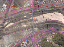 上記の青枠ボタンをクリックすると航空画像に図面等のレイヤーが重なります。