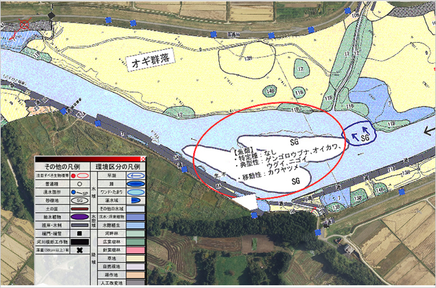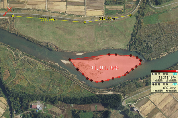 河川現況台帳、構造物台帳、河川整備状況台帳、河川被災履歴、定期河川縦横断測量成果など電子データ化し、レイヤーで重ね合わせ表現できます。